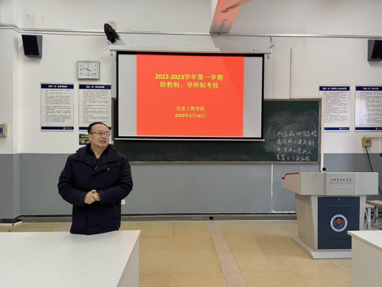 为全面贯彻落实山东华宇工学院关于提高新入职教师教学能力的相关要求,充分发挥学术造诣高、经验丰富的资深教师对青年教师传、帮、带作用,鼓励和引导青年教师完善课堂教学能力,今年会官网对2022-2023学年第一学期实施助教制、导师制的老师举行考核活动,学院9位助教老师、7位导师参加了此次活动,薛河儒院长、李国良副教授等五位老师作为评委针对导师及助教的表现进行评分。