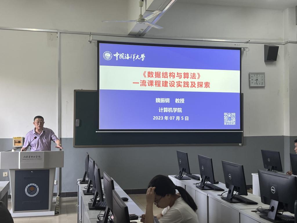 此次培训采用讲座与研讨相结合的方式进行。北方工业大学郭书军教授结合自己近四十年的教学经验,运用案例讲解了教学各环节工作的开展情况,郭教授在学生竞赛方面有着非常丰富的经验,在研讨会中与老师们深入交流如何做好竞赛学生的培训。常州大学侯振杰教授从专业人才培养方案入手,讲解OBE教育理念的实施,如何以成果导向进行反向设计,从课程大纲的设计到围绕专业特色进行课程改革,满满的“干货”让老师们收获良多。中国海洋大学魏振钢教授所主持的《数据结构与算法》课程2023年度获批国家一流课程,魏教授以该课程为例,讲解一流课程的建设过程,包括教学团队成员的遴选、如何坚持“立德树人”宗旨,在课程建设过程中贯穿OBE理念、如何进行教学设计、线上线下教学资源的积累与建设、工程认证对毕业生的要求、信息技术的运用、如何进行教学评价等内容,丰富的学识、幽默的谈吐,给老师们带来了一场学术盛宴。