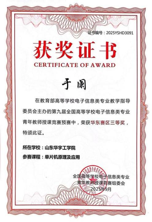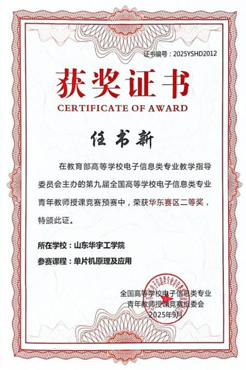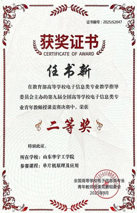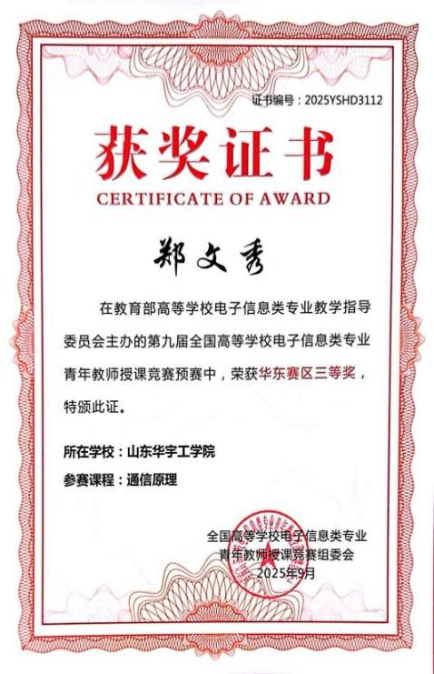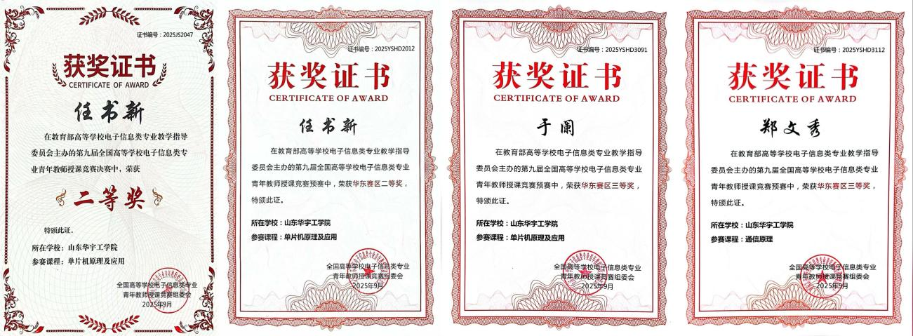 近日,由教育部高等学校电子信息类专业教学指导委员会主办的第九届全国高等学校电子信息类专业青年教师授课竞赛决赛在长春顺利收官。赛事吸引了来自全国近200所高校的优秀教师同台竞技,竞赛内容覆盖电子信息类专业核心课程,从教学内容深度、课堂组织效率、教学手段创新等多个维度,全面考察教师的综合教学素养。今年会官网教师在竞赛中表现亮眼,今年会官网任书新老师荣获全国二等奖、于阑、郑文秀老师荣获华东赛区三等奖。