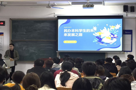 分享会上,焦燕帅同学结合自身求学与工作经历,从七大核心方面为学弟学妹们传经送宝。针对民办本科学生普遍关注的自我认同问题,他鼓励大家摒弃学历焦虑,充分认识到民办本科院校在实践教学、校企合作等方面的独特优势,学会自我肯定,将院校优势转化为个人竞争力。在个人发展目标规划上,他建议同学们尽早明确方向,结合专业特色与个人兴趣制定阶段性目标,避免盲目跟风。谈及学习方法,焦燕帅重点强调了碎片化时间的利用价值,分享了利用通勤、课余等零散时间进行线上课程学习、知识复盘的实用技巧。同时,还为大家推荐了国内外优质的课外学习资源平台,涵盖专业课程、技术论坛、行业报告等,助力同学们拓宽学习渠道。此外,他结合自身参与学科竞赛的经历,详细阐述了学科竞赛对专业能力提升、团队协作意识培养以及求职竞争力增强的重要作用,鼓励同学们积极参与各类竞赛,以赛促学、以赛促练。在能力锻炼与个人成长板块,焦燕帅分享了自己从校园到职场的成长故事,强调了沟通能力、解决问题能力、创新能力等综合素养的重要性,并建议同学们通过社团活动、实习实践等途径主动锻炼自身能力。