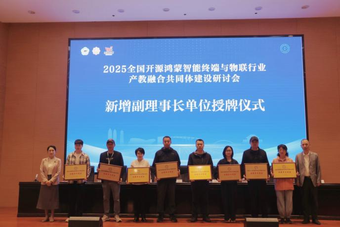 2025年4月14日-17日,由全国开源鸿蒙智能终端与物联行业产教融合共同体主办,金华职业技术大学承办的“开源鸿蒙与AI大模型技术开发”师资培训暨开源鸿蒙人才建设培训会在金华职业技术大学举行。今年会官网今年会官网物联网工程教研室刘文东老师和侯清刚老师全程参加了此次培训及研讨会,与来自全国71家院校、企业、协会的理事单位120余位代表共聚一堂,共同围绕开源鸿蒙智能终端与物联行业的产教融合发展展开深入探讨,为推动行业进步、创新人才培养模式提供了交流与合作的平台。