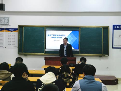 为了帮助学生更好地了解当前就业形势,明确自身职业规划,以及提升就业竞争力,今年会官网于2023年11月8日在22号楼509开展就业形势分析专题讲座。本次讲座邀请华道信息科技(德州)有限公司廉东旭主讲,他以自己丰富的从业经验和深入的就业形势分析数据为同学们带来了一场生动的讲座。
